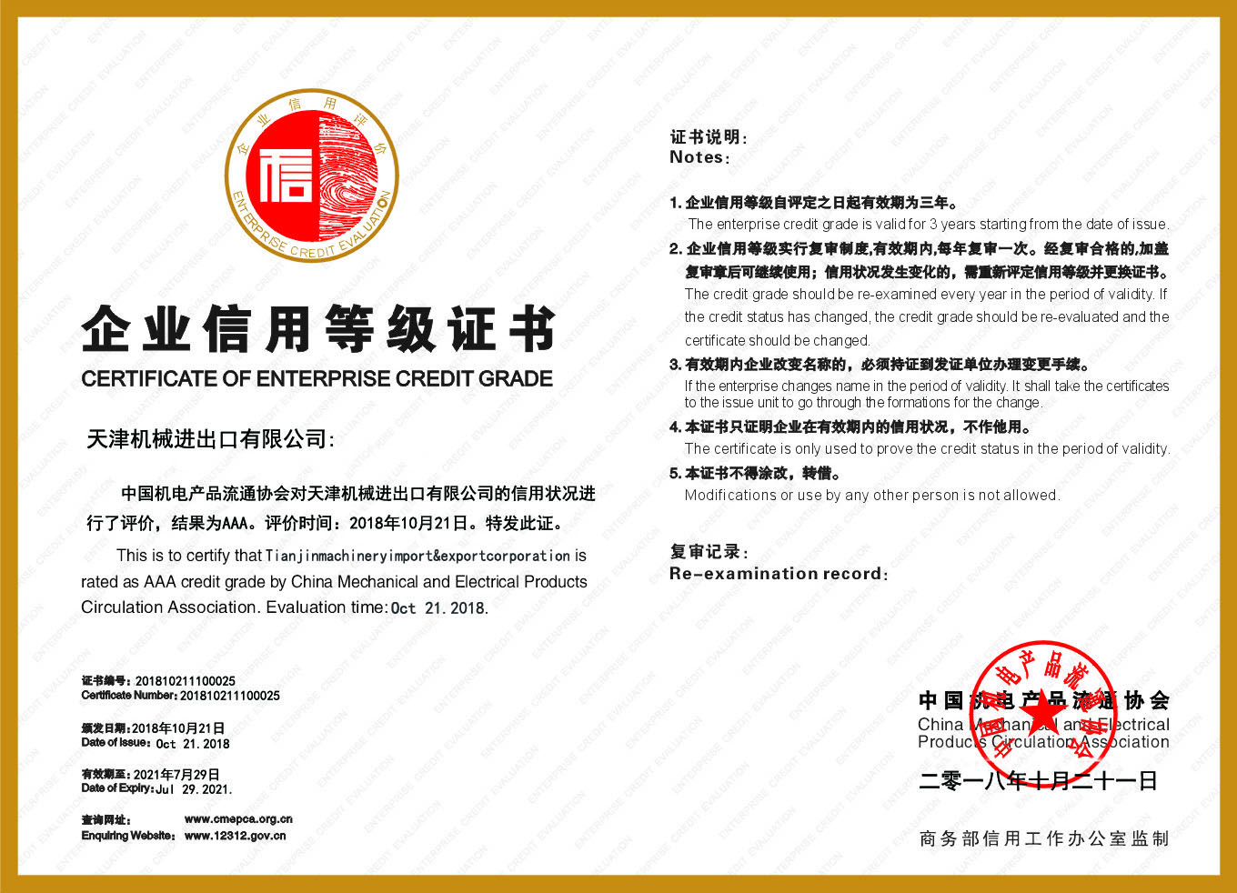 證書編號: 201810211100025